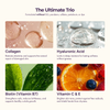 A: •Collagen: Restores elasticity and promotes skin repair. •Hyaluronic Acid: Deeply hydrates and plumps the skin. •Vitamins C & E: Brighten skin tone and combat free radicals.