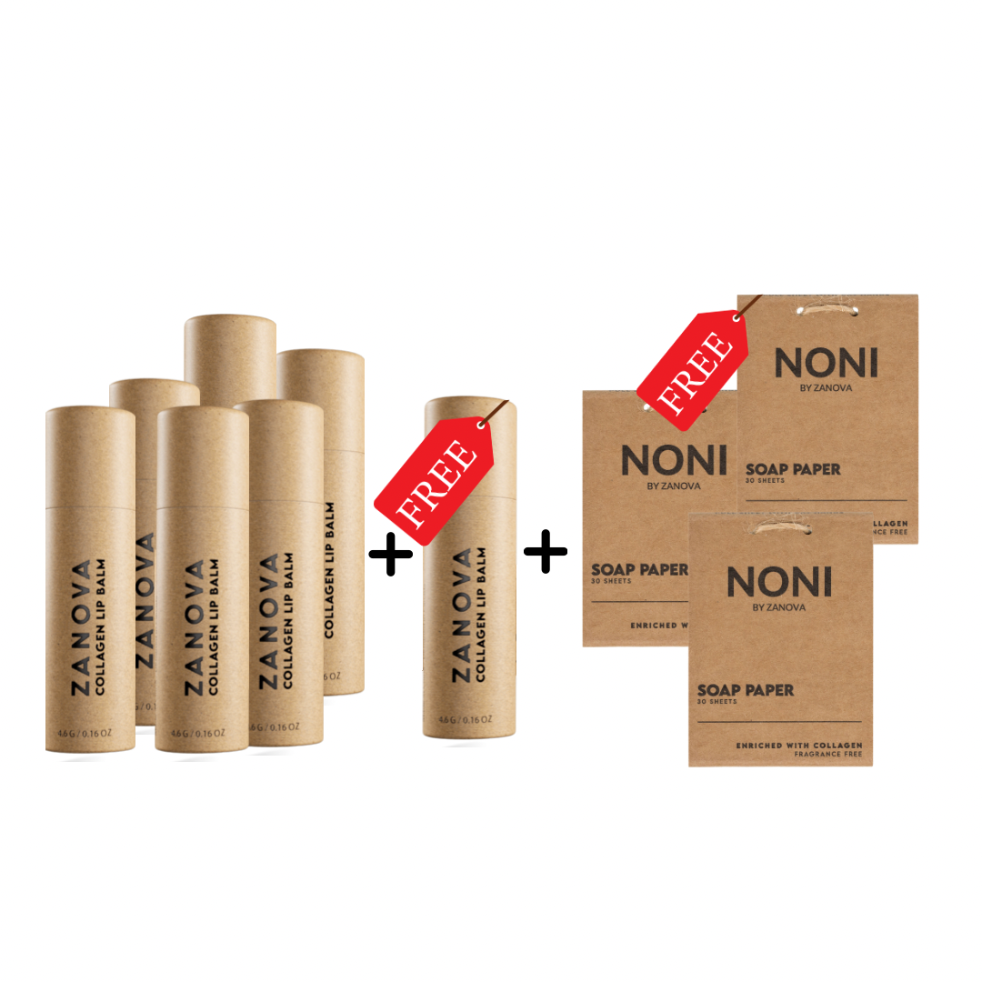 Zanova Collagen Treatment Lip Balm 6 Packs + 1 Free Extra Lip Balm + 4 Free Zanova Collagen Treatment Paper Hand Soap