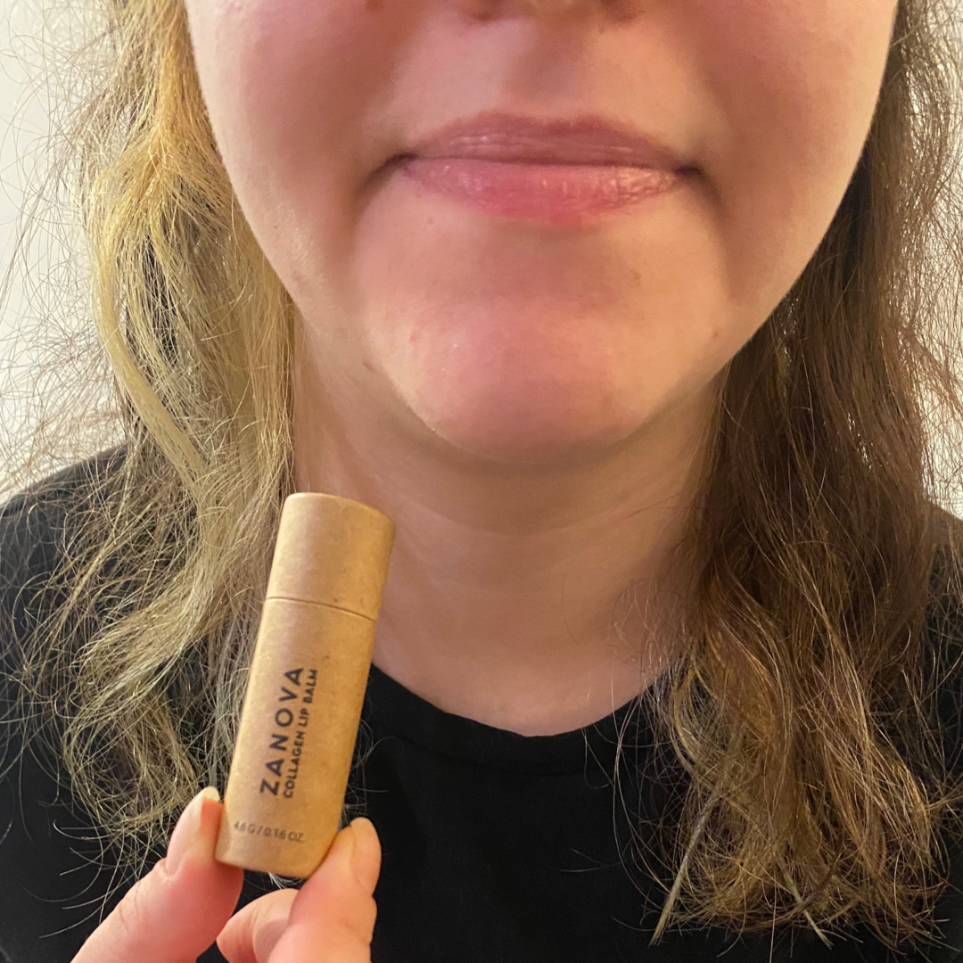 I am so happy I discovered ZANOVA LIP BALM! It has quickly become a staple in my daily skincare routine. The unscented formula is perfect for sensitive skin, and the combination of collagen, coconut oil, jojoba oil, and vitamin E has made a huge difference in the health and appearance of my lips. They feel softer and smoother, and the balm provides long-lasting hydration throughout the day. I also love that it's made with natural ingredients, so I can feel good about using it on a daily basis. Thank you, ZANOVA LIP BALM!"