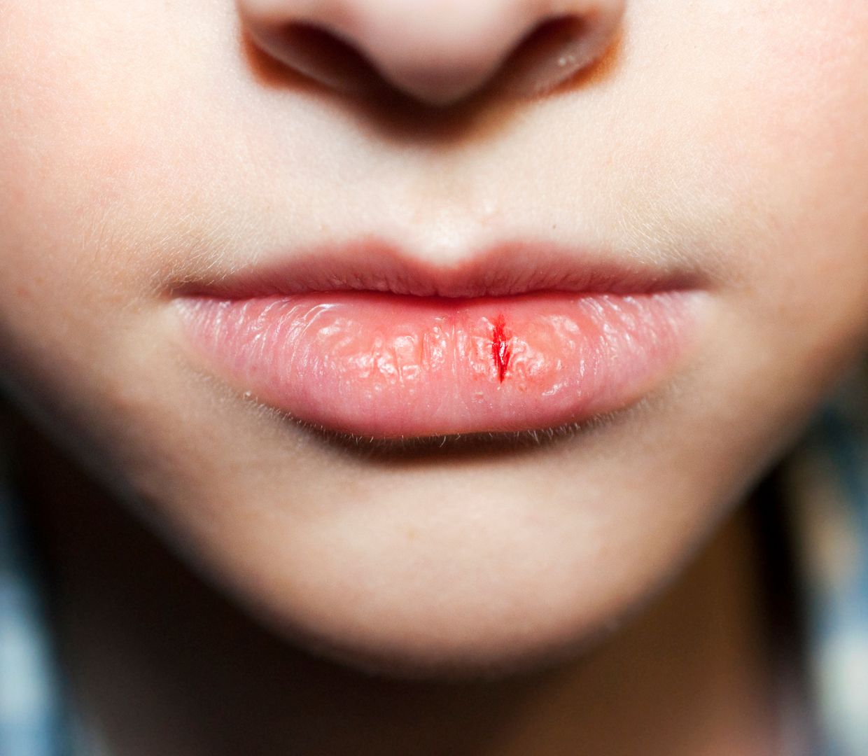 Biting the lips can trigger the onset of cold sores, which are painful and contagious.