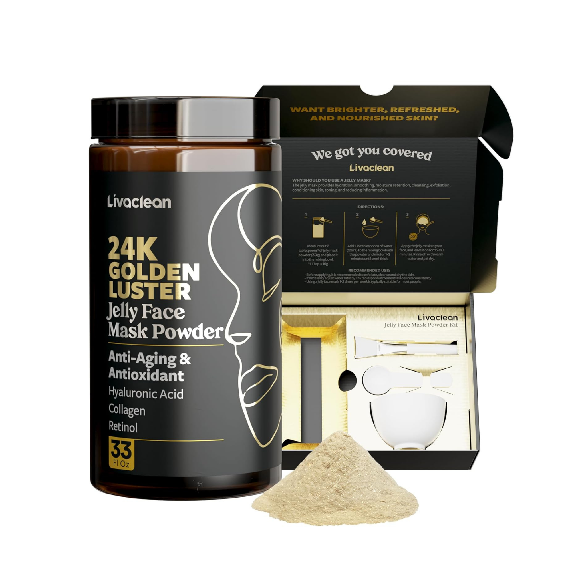 Experience the ultimate at-home spa treatment with our luxurious 24K Hydro Jelly Face Mask. This premium mask combines hyaluronic acid, collagen, retinol, and a powder-to-gel formula to deeply revitalize and restore skin cells, leaving your complexion radiant and refreshed.